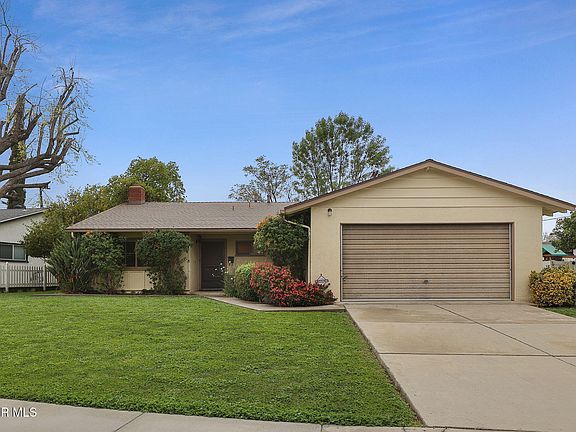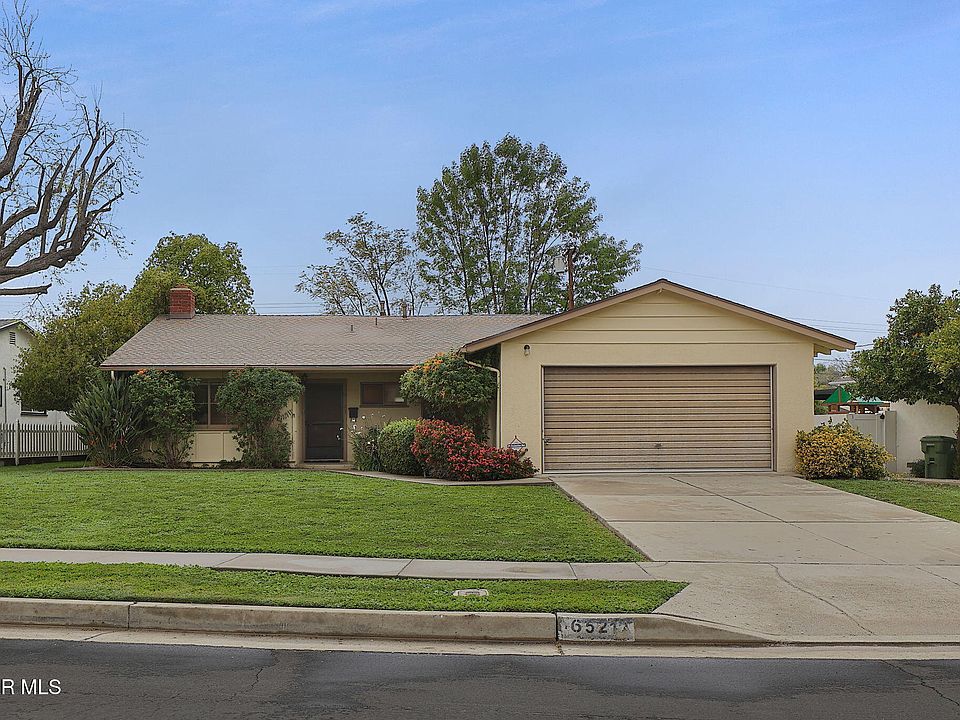 This charming one-story home set in a quiet, lovely neighborhood, offers 4 bedrooms and 2 bedrooms. Inside there is a spacious living room with a cozy fireplace, and a large family room with sliding door to the patio. The family room is open to the kitchen featuring a gas stove, breakfast bar and ample storage. Off the kitchen is an indoor laundry room with direct access to the back yard. The hallway leads to the main ensuite bedroom, a second bath off the hallway and three more bedrooms. The backyard offers a covered patio and large grassy area, all surrounded by block walls for privacy. A newer roof was installed in 2018. The exterior was repainted in 2021. There is a two-car garage. The home has nearby shopping and easy freeway access. Let this classic mid-century home with no indoor steps and ideal floor plan be your work of art.