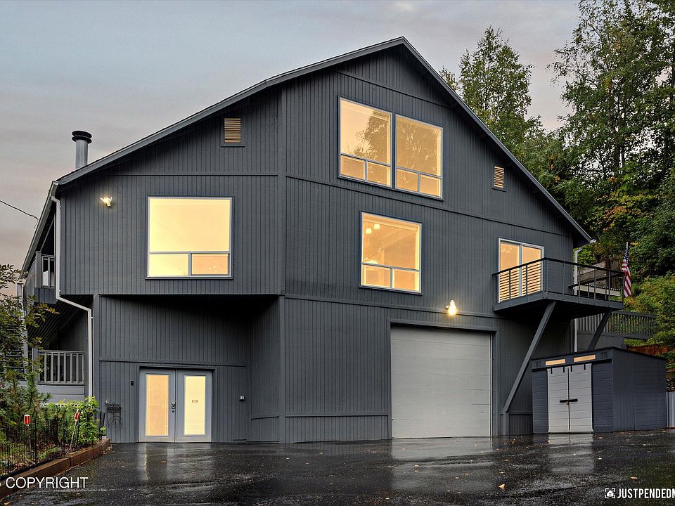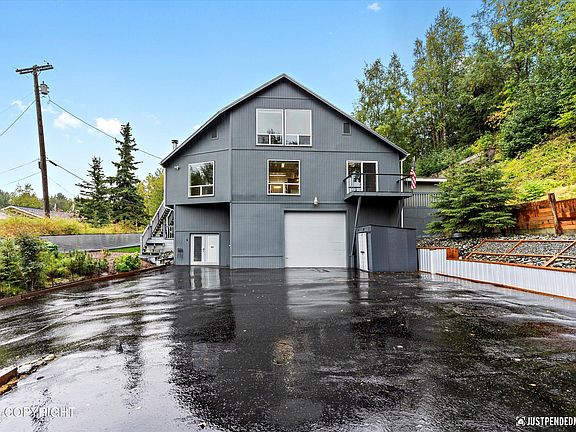 Insanely beautiful jewel lake home on an enormous lot with an oversized 3 car garage close to airport, schools and shopping. Top floor master bedroom equipped with a luxurious ensuite equipped with a full sized jacuzzi. Enjoy your kitchen surrounded by ample ambient sunlight that stretches over your private front deck and spacious living room. Need a huge yard and ample parking? You got it!Come check out this happy, comfy, well laid out, spacious home with massive garage and 12 ft ceiling, tons of storage on almost 1/3rd acre. 2025 assessed value is $545,100. Lovely home on large, very private, sheltered lot. Huge paved parking in front with room enough for large RV. Huge garage/shop with amazingly large mezzanine and access ladder for storage in main garage. Smaller garage set up with french doors but still has garage door in place if that is preferred. Laundry sink, cabinets and area for hanging coats, storing recreational equipment, bike hangers, additional lighting, and ceiling rack. Separate laundry room. First floor has 2 full baths and two nice-sized bedrooms, kitchen, living room with wood burning fire place and 8 ft wood rack, wood and cover included on side deck, pantry/storage area and dining room/study/TV room and deck off dining/study. 3rd floor is master bath with 7 foot double head shower and four person hot tub with shower connection, separate toilet, 2 solartubes for natural light. Master bedroom is huge, with 30 feet of mirrored closet. Front of building faces, west with some views of Mt. Susitna ( Sleeping Lady) and DeLong Lake (right across the street) can be seen from master bedroom, living room and TV/Study. Home sits against a hill on the south side, helping to shelter from winds and higher than the property to the north. Vacant 2 acre parcel is across the street (and also for sale) and trees shelter views to/from neighbors in backyard. Very private, safe and close to transportation, including bus route and airport. Huge grass fenced backyard with plenty of room for gardening. 40+ feet of decking in backyard with 2 sets of stairs to second floor. Lot size is 13200 sf. Roof cleaned, treated and sealed in July 2023. Interior painted August 2023. New exterior paint August 2024. Pavement resealing completed June 2025. All LED lighting, new modern baseboard covers, glass blocks add light to one of the 2nd floor bathrooms, privacy glass doors on 2 bedrooms, all outside doors have Schlage combo locks,earthquake latches on upper kitchen cabinets and no damage from November 2018 quake. Sheds, 2 yo Tower washer/dryer combo, all appliances including refrigerator and garden/yard tools stay with full price offer. Very comfortable and spacious home. Lucrative as rental/vacation rental. Excellent for airport employees.