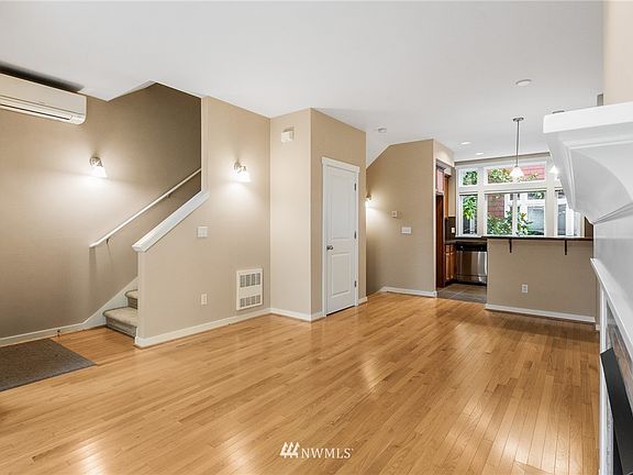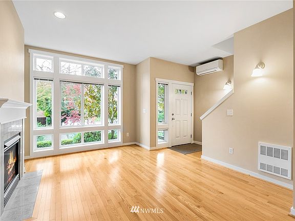 Amazing Ravenna townhome with soaring ceilings & abundant natural light from front wall of windows. Main level features gorgeous wood floors, cozy gas fireplace, and convenient half bath. Open kitchen has granite tile countertops, stainless steel appliances, eat-up breakfast bar and eating area. Upper level features two spacious bedrooms with vaulted ceilings, walk-in closets and shared full bathroom. This home is completely turnkey, and features upgraded, efficient mini-split HVAC for heating/cooling. The attached oversize garage allows for ample parking and storage. One of the best locations on a quiet street near U Village, UW, bus lines, new light rail, and some of Seattle's best restaurants with a walk score of 83 and bike score of 79!
