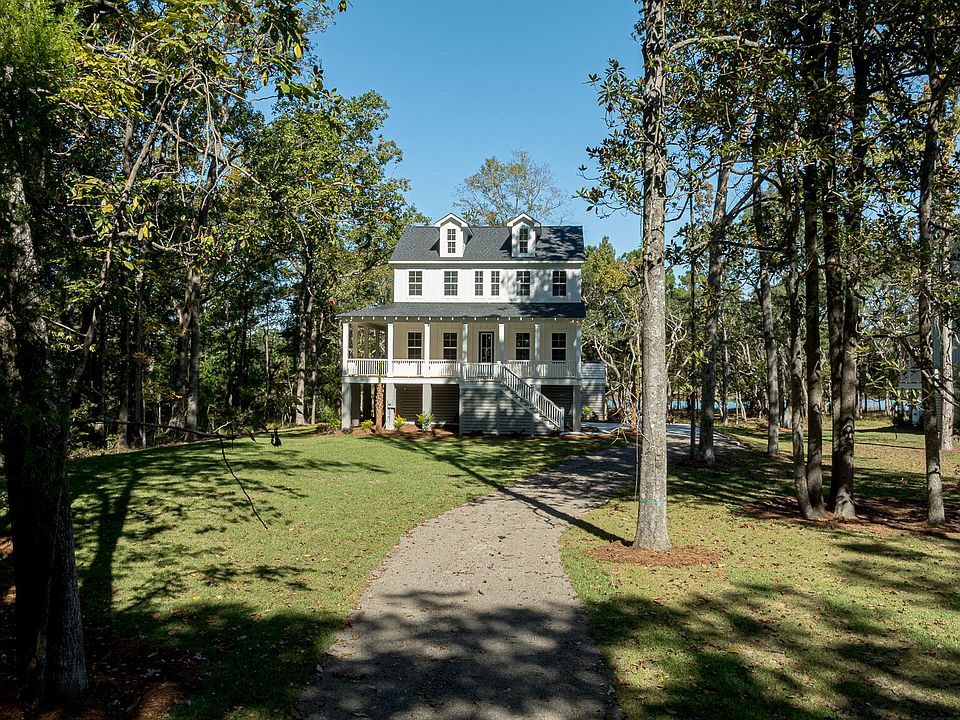 MOVE IN READY! Brand New Construction. 0.82 acre, Lakefront & No HOA Waterfront living in beautiful Meggett. The elevated Kennedy floorplan with a wrap-around porch offers luxury living with four bedrooms and three full baths. Features include a gourmet kitchen, fireplace, covered porches, 10-foot ceilings on the main floor, laminate hard surface flooring, quartz countertops, and more.Enjoy crystal-clear, purified water from every tap with the whole-home reverse osmosis system. Experience privacy and relaxed coastal living just 20 minutes from shopping and grocery stores in West Ashley, 10 minutes from the Toogoodoo boat landing, and close to the beaches of Edisto and Kiawah.