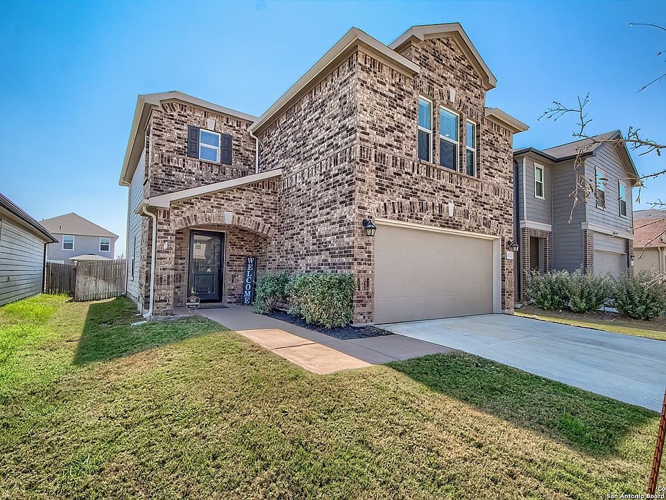 This exceptional 2-Story built in 2021, with 9-ft. first floor ceilings. 6522 Cibolo Springs in Converse offers 1,901 square feet of modern living with premium finishes throughout. The property features a striking brick front exterior, two-car garage, and landscaped front yard that provide immediate curb appeal and move-in readiness. Inside, the home showcases 42-inch cabinets topped with stunning granite countertops and a stylish Moen Sleek faucet, creating both elegance and functionality in the kitchen. The home comes equipped with reliable Whirlpool appliances for seamless daily living. Hardy vinyl plank flooring extends from the entry through the great room, kitchen, laundry room, and bath, providing both durability and a cohesive design flow throughout the main living areas. The thoughtful floor plan includes three bedrooms located upstairs for privacy, a convenient half-bath on the main level, and two separate living areas-one upstairs and one downstairs-offering flexibility for families of all sizes. The primary bath suite serves as a true retreat, featuring a luxurious 42-inch separate garden tub and shower with attractive tile surround, perfect for unwinding after long days. Located just mins away from Randolph Air Force Base and approximately 11 miles from Fort Sam Houston, this property offers an ideal location for military families seeking quality housing with an easy commute to either installation. The proximity to Forum Shopping Center adds convenience for daily errands and dining options. The newer construction means energy-efficient systems, modern amenities, and the peace of mind that comes with builder warranties, all situated in the desirable Converse community that serves as a gateway to the greater San Antonio metropolitan area.