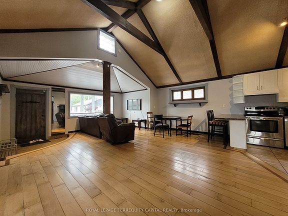 Retro-style furnitureHardwood floorsCathedral ceilingTiled kitchenPlenty of cabinetsWalk-in closetPrivate laundry