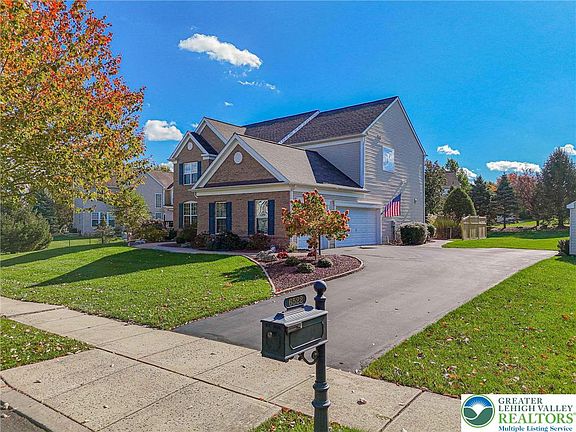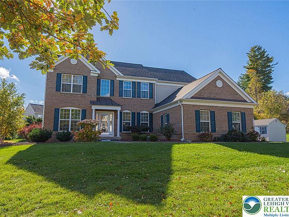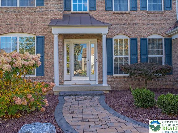 Welcome to this delightful 4-bedroom Colonial in the sought-after Graymoor section of Lower Macungie. Original owners have meticulously maintained the home and added thoughtful upgrades throughout. The grand two-story foyer, flanked by a living room and formal dining room, flows into the two-story family room featuring a gas fireplace framed by floor to ceiling windows, filling the space with natural light. The gourmet kitchen is a chef's delight, offering a 9-foot island with seating for four, Thermador appliances, granite counters, abundant cabinetry, coffee/beverage station and a walk-in pantry. A convenient first floor laundry room, half bath and separate office space complete the main level. Upstairs, French doors open to a spacious primary suite with walk-in closet and luxurious en-suite bath featuring a walk-in shower, whirlpool tub and expansive dual-sink vanity. Three more bedrooms and a full bath complete the second level. Outdoors, enjoy the private back yard oasis with stamped concrete walkways and patio, a motorized awning, built-in firepit and covered seating area-perfect for entertaining or relaxing. A 3-car garage and large driveway provide ample parking. Located in a prime neighborhood close to parks, schools, shopping and major routes, this home provides elegance, comfort and convenience.