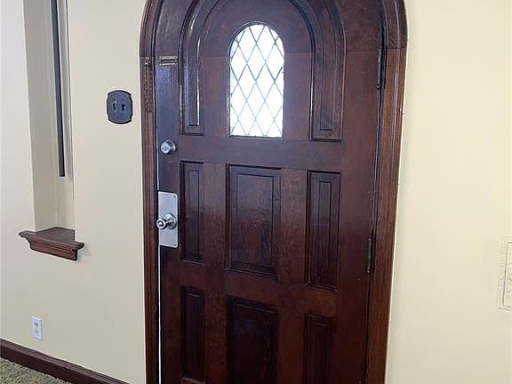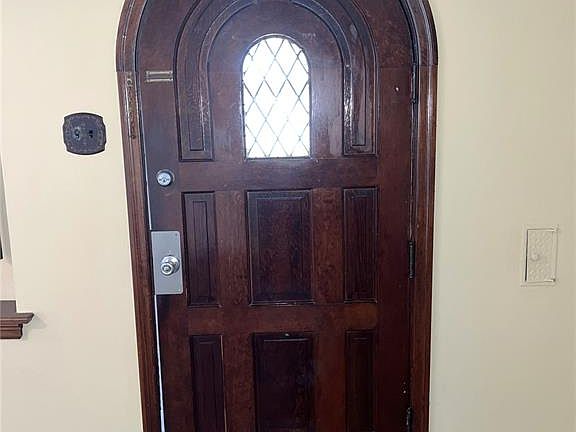 All the woodwork is beautiful in it's original finish and the dual leaded glass windows still open.