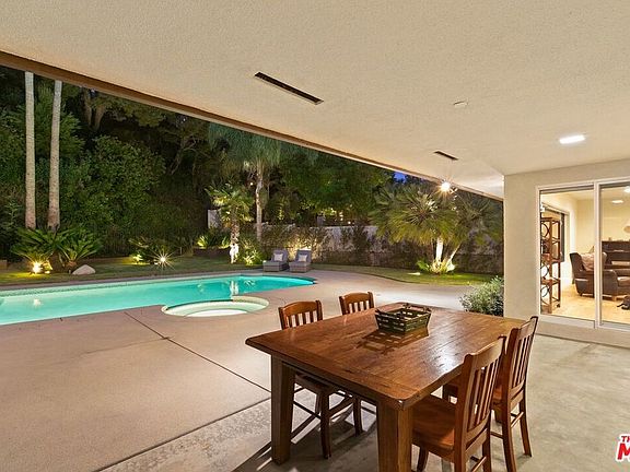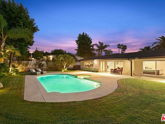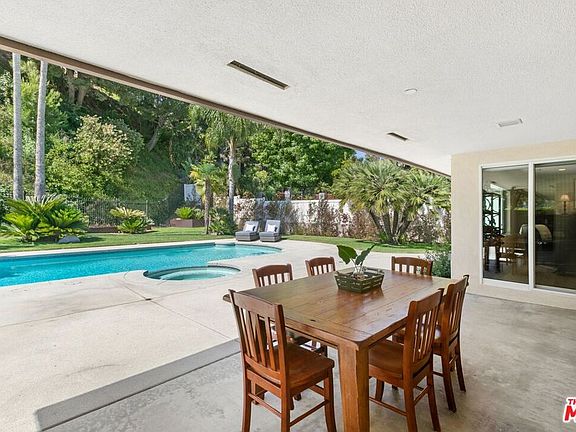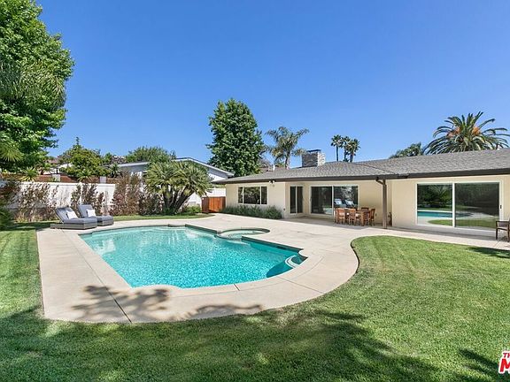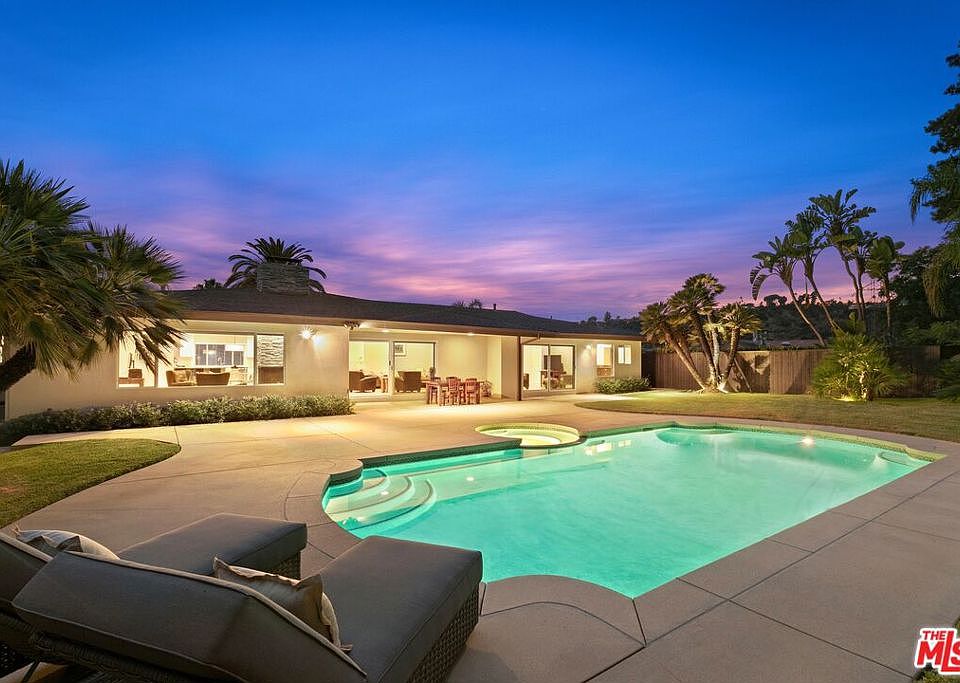 Nestled in the highly sought-after Lakeridge Estates of the picturesque Lake Hollywood community, this mid-century modern home with pool and spa presents a terrific opportunity for unparalleled indoor/outdoor living in Hollywood's Hills. Situated on an expansive, verdant, flat 15,984 sq.ft. lot, this tastefully updated residence offers a captivating blend of modern comforts and 1960's most sought after features - vaulted ceilings, walls of glass, and an open concept floor plan. Elevated "just enough" above street level, the home's entry has hardwood floors (throughout the house) and opens to the generous living room. A central, "two-sided" stacked stone fireplace separates living from family/dining (currently used as an office), and family/dining from breakfast area. A fully-equipped, modern stainless-steel-laden kitchen beckons culinary enthusiasts to create memorable meals and moments with their guests at the kitchen's large "eat, drink, hang out" bar. If you love laundry rooms (don't we all?), this residence is for you: A large, cabinet-lined room solves all kinds of problems, has a side-by-side high-end washer/dryer set, and leads to an oversized two-car garage (direct entrance!). The home's primary suite could be mistaken for a poolside room at a chic hotel or resort. Vaulted ceilings are here, large closet, and a redone spa-style bathroom with separate tub/shower and two sinks. Shower in total privacy while gazing at your glimmering swimming pool! Two additional (and ample) guest bedrooms share another spa-style bathroom. There is also a third full bathroom for ultimate functionality.Bring the outdoors in by sliding open glass doors that lead to a true "swimmer's" pool with a soothing spa. Multiple patios and concrete pool decks make room for large gatherings, or a quiet dinner beneath the covered indoor-outdoor dining or lounging area. The expansive, grassy yard (one of the largest in the neighborhood) is perfect for year-round outdoor enjoyment. Other features of this house include recently upgraded plumbing, electrical, roof, garage door, HVAC, security system, and windows. It's close to everything the area has to offer, with easy access to DTLA, hiking trails to the Hollywood Sign and the Wisdom Tree, the Hollywood Lake Reservoir, the dog park, Hollywood Bowl, shops, restaurants, Whole Foods, Trader Joe's, and major studios like Universal, Warner Bros., Disney, and Netflix. Don't miss the opportunity to make this upgraded mid-century dream home yours.