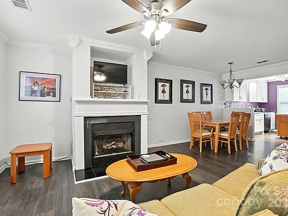 Huge price reduction! Best unit priced to Sell! If you've been waiting for a fully updated, gorgeous townhome listed in South Charlotte under $300k, it's finally here! Situated in the cozy Carmel Heights neighborhood, this 2 BR, 2.5 Bath home checks all the boxes. Perfect for first-time buyer, downsizer, or as an investment, the renovations are seen throughout this entire home. Park in your attached 1-car garage or in open parking out front. The covered front porch keeps visitors dry! Don't like carpet? No problem. Modern gray "Dream Home Ultra Laminate Black Sand" luxury vinyl throughout living areas, hallways, stairs and bedrooms. Large Living Room with gas log fireplace for cozy nights, leads to large Dining Area big enough for your table, hutch and more. The kitchen is to die for - seller made sure to have room to store your small appliances and didn't miss out on any details. Ceiling-height shaker style soft-close white cabinetry with crown moldings and hidden trash/recycling, gray-veined quartz countertops, and GE Profile Black Slate appliances that really impress! The white cabinets and large-format tile in carry through all of the bathrooms. As you go upstairs, you'll love the brand new custom carpet runner - so much style, and safer for pets or sock wearers. The Primary suite is an enormous 21'5"x11'5" with a fully renovated bath - Huge "barn door" fully tiled shower, carries through to clothes drying area and then into your 6'9"x7'3" walk-in closet - WOW! You won't find a Primary like this in many single family homes. The second bedroom is a generous 14x11'9" with ensuite bath and large closet. Laundry is upstairs for your convenience, and the Whirlpool washer/dryer are included. Neutral paint colors, with an pop of accent color in the kitchen. New white blinds throughout the home. So much storage, including under-stair massive storage accessible from powder room and kitchen pantry. Back door walks out onto patio, with open views. Walk from home to the new Publix, Lidl, and around the corner to Carmel Commons. Easy access to 51, 485, airport and multiple routes available to Uptown. Convenient to Ballantye, Southpark, Pineville and so many great restaurants and shopping.