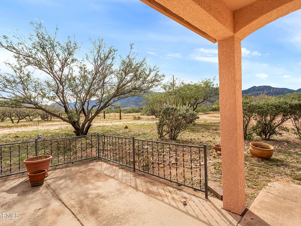Tucked away on a private acre surrounded by mesquite trees and mountain views, this 3-bedroom, 2-bath home feels like your own little retreat. The split floorplan and tile floors make it easy to care for, while the spacious eat-in kitchen is the heart of the home—perfect for cooking, coffee, and conversation. Step outside to enjoy the quiet, tend a garden, or watch the birds drift through the trees. With peach and plum trees right in your yard, it's a place where you can slow down and truly feel at home.