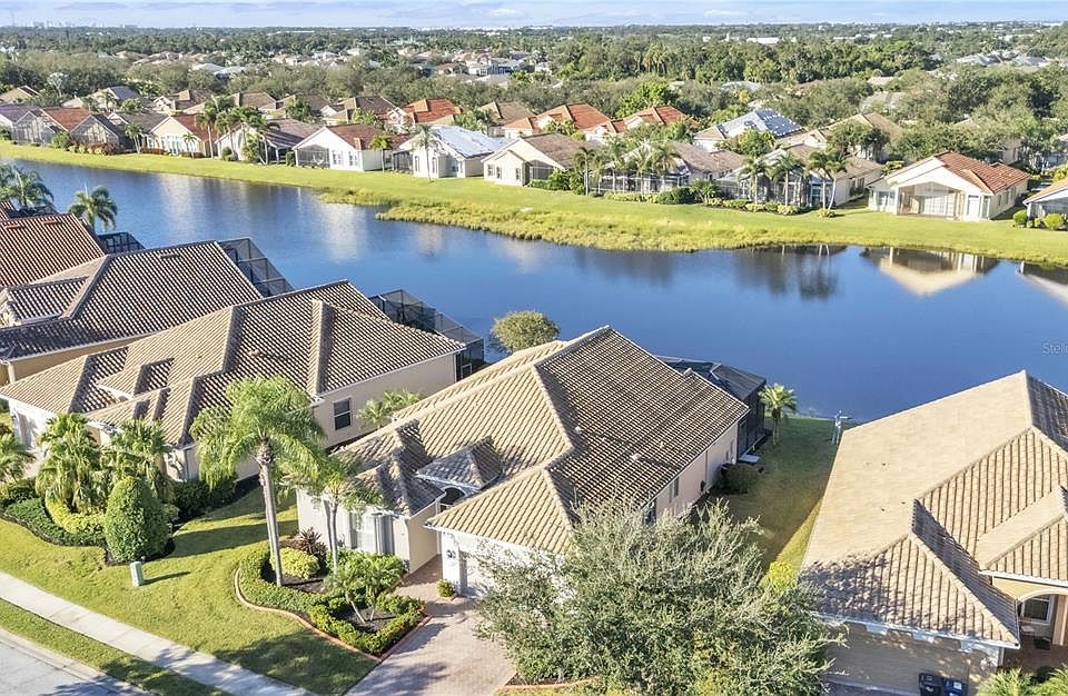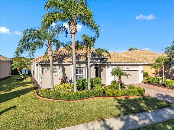 Discover refined living in this exquisite Sedona model, nestled within the Cascades at Sarasota, a 55+ gated community. Spanning 2,599 square feet, this meticulously maintained residence boasts serene lake views and a private pool, offering an idyllic Florida retreat. Inviting Interiors. Enter through grand double doors into a gracious foyer that flows into a spacious living area. The expansive family room and gourmet kitchen create a seamless space for entertaining, with sliding glass doors revealing a covered lanai overlooking the shimmering pool and tranquil lake. A built-in entertainment cabinet with an electric fireplace adds warmth and sophistication to the setting. The kitchen, a chef’s delight, features gleaming stainless steel appliances, lustrous granite countertops, and rich wood cabinetry. A breakfast bar seating four invites casual dining, while the formal dining room sets the stage for memorable gatherings, savoring your finest culinary creations. Luxurious Owner’s Suite. The oversized owner’s suite is a sanctuary of comfort, featuring dual bathrooms with a soaking tub, separate shower, and generous walk-in closets. An extended window nook offers a serene seating area with captivating views of the pool and lake. A private ensuite guest bedroom ensures comfort and seclusion for visitors, while an additional guest room enjoys direct access to a well-appointed guest bathroom. Versatile Spaces. A dedicated home office provides ample space for productivity, enhanced by thoughtful design elements throughout the home. Tray ceilings, elegant tile flooring in living areas, custom honeycomb and Levolor blinds, and designer ceiling fans elevate the aesthetic. Practical upgrades include a central vacuum system, accordion hurricane shutters, transom windows, and a laundry room with a sink. Cascades redefines active living with its newly renovated 25,000-square-foot clubhouse, featuring a heated indoor-outdoor pool, six Har-Tru tennis courts, a state-of-the-art fitness center, and a banquet hall. Engage in vibrant community life with bocce ball, horseshoes, pickleball, arts and crafts, pottery classes with two kilns, and an array of social clubs and activities orchestrated by a full-time Social Director and Tennis Pro. From card games and yoga to travel clubs and aerobics, there’s something for every interest. Prime Location. Just minutes from the pristine beaches of Siesta Key, Lido Key, and Longboat Key, Cascades offers easy access to crystal sands and turquoise waters. Downtown Sarasota, a mere 15-minute drive, brims with cultural treasures, including The Asolo Repertory Theatre, Ringling Museum, Selby Gardens, and the Van Wezel Performing Arts Center. Enjoy fine dining, art galleries, and shopping at St. Armands Circle, UTC Mall, Whole Foods, and Fresh Market. Top-rated healthcare and Sarasota International Airport are also conveniently nearby. Community Benefits. Cascades is free of CDD fees and includes lawn maintenance and partial plant care, ensuring a low-maintenance lifestyle within a welcoming, secure gated community. Embrace the elegance and ease of this exceptional Sedona model, where luxury and leisure converge.