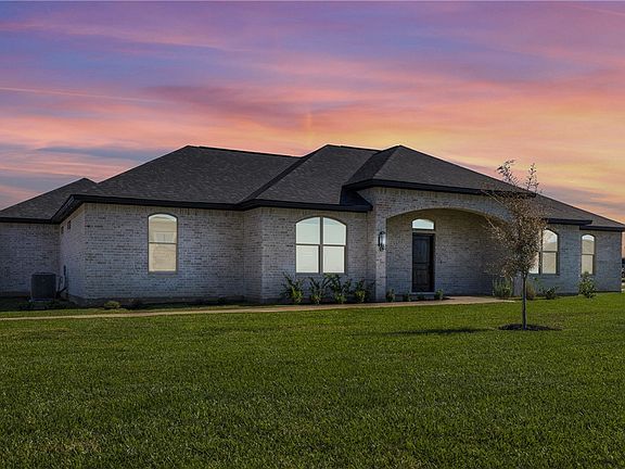 Welcome to Los Cazadores. Country retreats only 7 miles from Hwy 6. This 2166sf home on over an acre will make your dreams come true. Walk in to a beautiful custom groin brick entry ceiling that leads to a very high cathedral ceiling in the living room. Adorned with a remote floor to ceiling fire place, wood beam, extra large windows and open to a gorgeous kitchen. You will love cooking and entertaining in the spacious kitchen featuring a large, eat at, island. Love some coffee from your built in coffee bar (or us as a dry bar). The primary has a huge shower and wonderful deep stand alone tub. The back patio is massive and will have a very nice grill installed. This is living large!
