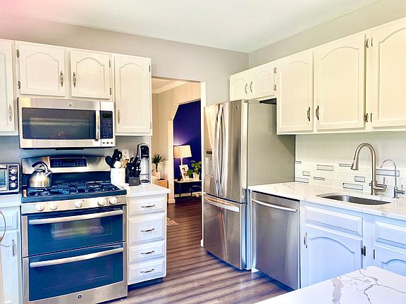 This gorgeous fully renovated home has modern-day conveniences and a large floor plan. The main level of the home occupies a sunken living room that is bright and sunny and provides access to the back yard, a welcoming dining area and kitchen area with stainless steel appliances, granite countertops and ample cabinet space. The first level also features an additional room that could be used for an office or second living room, a bedroom, a full bathroom and access to the oversized 2 garage with additional areas that could be used as a personal workshop/ workspace.