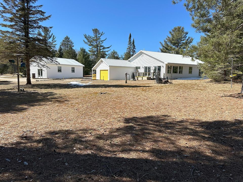 17.5 acres ranch-style home with 3 bedrooms, 2.5 bathrooms, and surrounded by state land on 3 sides. The home features oak cabinets, trim, and doors throughout along with a 7-person sunken hot tub and a guest suite with adjoining bathroom. The kitchen and hallway pantry, offer sliding shelves for ease of access. Adjacent workshop could easily be converted into a guest house with utilities already installed. Previously a campground, electric hookups and 2 wells on the property lend to dreams of developing the old campground and income potential. Large open fields, towering pine trees, meandering trails, and the forest blanketed with wild blueberries all add to the tranquility you feel here. Setup your showing now.
