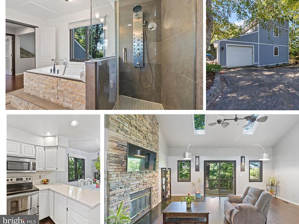 Wonderful contemporary home with gorgeous updated kitchen and baths. And to make it even better, this home has a beautiful seasonal lake view. You truly feel tucked in and private among the woods. There is a steep access road down to the home but don't let this deter you from seeing it - there are two places to park! Besides the driveway and garage, there is very easy access to the front door from the level road below, overflow parking for guests or during snow events (there is a sign on Lakeridge drive). The main level family room has gorgeous engineered hardwood, a beautiful stone fireplace, access to the large wrap around deck, a dining area and the updated open kitchen with stainless steel appliances, beautiful quartz counters, and stunning backsplash. There is also a main level bedroom and bathroom, allowing for main level living if required. Upstairs there is the primary bedroom with large walk-in-closet and an absolutely stunning bathroom with soaking jacuzzi tub, glass shower with custom body jets and double vanities. It feels like you're at a spa! This really needs to be seen to be appreciated. There is also an additional bedroom on the upper floor. The basement is fully finished with a TV/rec room, a play room/family room/4th bedroom, another full bathroom and a large laundry. The basement is fully walkout to a patio that also allows you to take in season views. Experience all that Lake Linganore has to offer: deep Navigable lake, multiple sandy beaches, multiple pools, boating, fishing, swimming, tennis, basketball, beach volleyball, nature & bike trails, Frisbee golf, pickle ball, Event Tent, Farmers Markets, Summer Concert Series under the stars, playgrounds and so much more! Come and see for yourself.