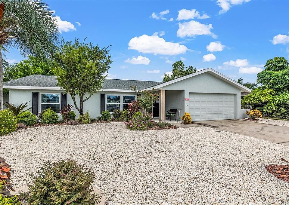 Welcome to your dream waterfront retreat in the heart of Apollo Beach, Florida. This remarkable 3-bedroom, 2-bathroom home with a 2-car garage is a masterpiece of coastal living. As you step inside, the rich bamboo wood floors seamlessly guide you through the open, light-filled spaces. The heart of the home is the thoughtfully updated kitchen, complete with modern appliances and granite countertops, making meal preparation a breeze. The open concept allows for great entertaining space as well as seamless flow from the main living areas. Both bathrooms have been tastefully renovated with contemporary fixtures, offering a spa-like experience. The guest bathroom is slate stone flooring which adds character to the beautifully remodeled guest bathroom. The master bathroom has a cypress lined ceiling which adds warmth to the space and further pushes the cozy beach cottage feel. A distinctive feature of this residence is the cypress-lined ceiling, which adds character and warmth to the sunroom as well. Outside, you'll be enchanted by the carefully landscaped rock garden that enhances the curb appeal. The real magic happens at the water's edge, where you can savor breathtaking sunsets and embrace the true Florida lifestyle. This waterfront oasis invites you to enjoy boating, fishing, and waterside relaxation right from your backyard. With its 2-car garage and idyllic location, this Apollo Beach gem offers the perfect blend of modern comforts and coastal charm.Nearby you will find the Apollo Beach Nature Preserve and a myriad of dining options. Experience the best of Florida living – The home operates as a lucrative rental on VRBO with bookings consistently scheduled. Call for your private showing today!