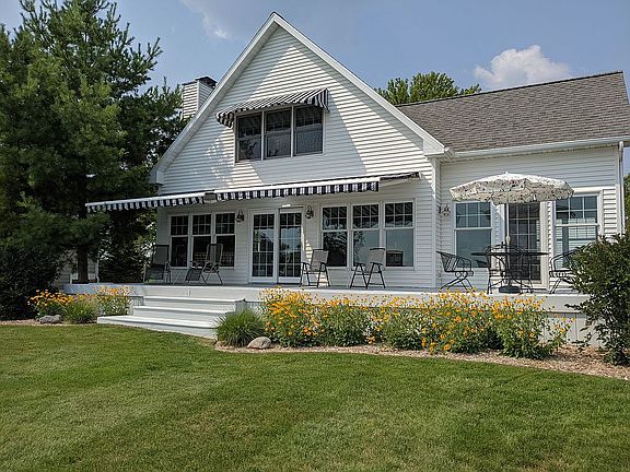 All-Sports Lake Home with open floor plan and an expansive 145 degree view of, and 90 ft frontage on, 724 acre spring-fed Crystal Lake. 1780 sq ft home built in 1998 with ample storage, southern exposure, and exceptional natural light throughout. 3 bedrooms (1 on main floor) 2 baths (1 full on main floor, 1 with spa tub) Full basement 981 sq ft, prepped for bath Gas fireplace Attached 2 car garage, insulated & heated, hot & cold water spigots, floor drain, and large attic storage. Internet, A/C, gas heat, well, sewer Exterior retractable awnings Includes: 50 ft dock, built-in dishwasher and microwave, refrigerator, stove, washing machine, dryer, water softener, dehumidifier and Weber grill Active lake association (water quality, fireworks, goose roundup) and several local amenities (roller rink, movie theater, driving range, tennis/pickleball courts) ~0.5 hr from Mt Pleasant ~1 hr from Lansing ~1 hr from Grand Rapids ~1.5 hr from Flint ~2.2 hrs from Detroit ~3.7 hrs from Chicago Showings only to qualified buyers by appointment