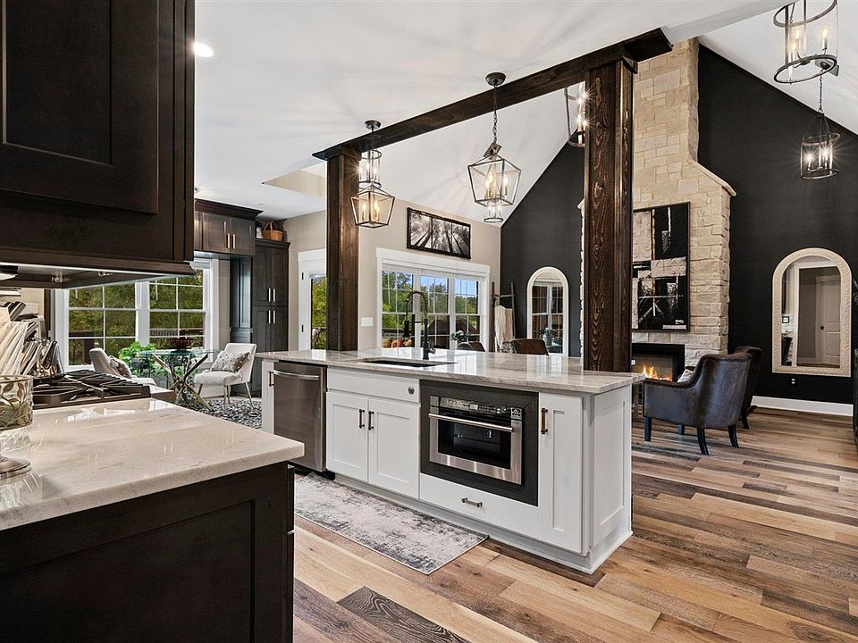 ATTENTION BUYERS! The seller is offering $5000.00 (Five thousand) towards INTEREST RATE BUY DOWN and/or CLOSING COST ASSISTANCE with an acceptable offer. This stunning home was built in 2023 but only partially finished. The current owner did not spare any expenses upgrading and completing the home with quality, custom finishes and luxurious upgrades for this remarkable property! The home features 4 Bedrooms and 3 full bathrooms, (2 on the main floor and 2 upstairs.) beautiful hardwood on the main floor. A dramatic great room showcases a 16' tall spectacular stone ventless gas log fireplace, cathedral ceiling and Wainscot dining room both with dramatic lighting. Enjoy the "one of a kind" chef's dream gourmet kitchen complete with Italian Forno stainless steel appliances, custom solid wood cabinetry boasting all glass uppers including interior LED and under cabinet lighting. A 10' x 5' exotic slab stone island, (Marble/Quartzite) wine fridge, custom pantry and beautiful views of the back covered patio and expansive 480sf deck perfect for entertaining and grilling!! Finally retire to the main floor master suite and 5 piece bath complete with double vanity, custom soaking tub, glass shower, bidet and his and hers walk in closets. Please call/text Katharina/Listing Agent for more information or your private tour. WELCOME HOME!