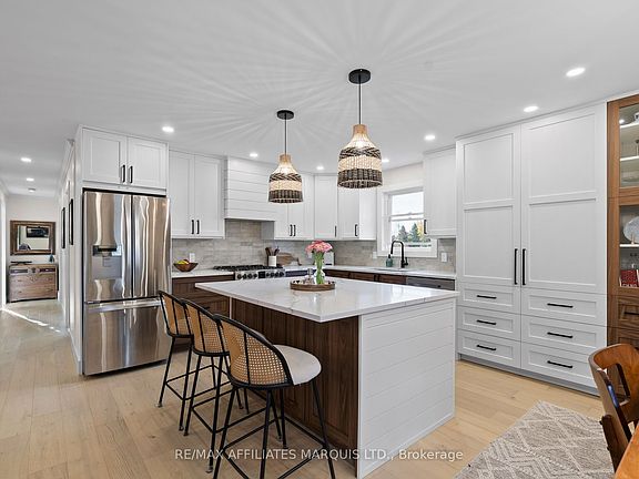 Welcome to this stylish and personality-filled 3+2 bedroom, 2 bathroom home offering approximately 1400 square feet of beautifully finished main floor living space plus a fully finished basement. From the moment you step inside, you'll notice the light-toned hardwood flooring that flows seamlessly throughout the main level, creating an inviting and airy feel. The recently renovated custom kitchen is truly a showpiece, featuring a large island with extra storage, quartz countertops, a stunning glass tile backsplash, boho lighting and thoughtfully designed cabinetry with modern conveniences. The open-concept layout connects the kitchen to both the living room and the bright three-season sunroom, perfect for morning coffee or quiet evenings overlooking the backyard. The dining area exudes modern charm, complete with a striking feature wall and space for a cozy coffee bar setup. Each of the three main-floor bedrooms is generously sized and tastefully decorated with accent walls that add warmth and character. The main bathroom is a spa-like retreat, offering a freestanding soaker tub and a walk-in glass shower. Downstairs, the fully finished basement extends your living space with a spacious rec room featuring a gas fireplace - ideal for movie nights or family gatherings - along with two additional bedrooms and an updated second bathroom. Outside, enjoy the large backyard with a hot tub, fire pit, and plenty of space for entertaining or relaxing under the stars. The attached double garage adds convenience, and the home is located in an excellent family-oriented neighborhood just minutes from Cornwall - the perfect blend of modern comfort and small-town charm. 48 hour irrevocable on all offers.