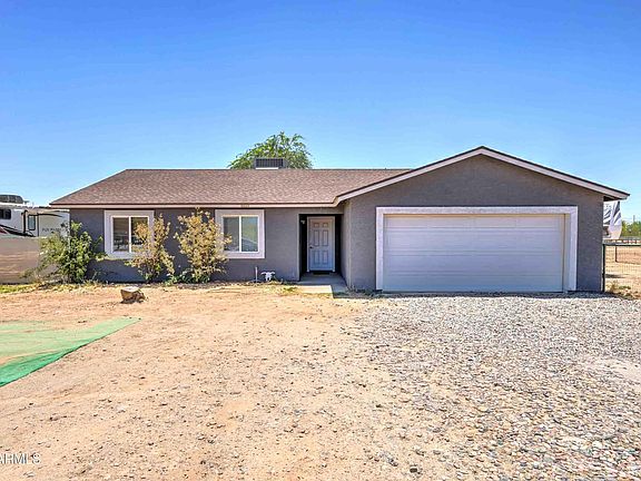 Looking for horse property? This recently renovated home has it! 1.13 fenced acres with 9 stall setup as well as additional stalls, tack t-room and turnout! This home is very energy efficient with 4.5 KW of owned solar! Roof was replaced in 2022. Interior has wood plank tile in most areas and LVP in the bedrooms. Bathrooms have been completely redone as well as the kitchen with tile backsplash and hard surface tops! Full RV Hookup on east side of home in the back yard.