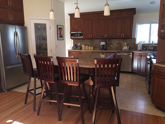 Ranch style home updated with complete remodeling done all permitted & by professional architecht. Bright and airy living room & kitchen with 9 ft ceilings, recessed lights, 6 ft. custom granite island, walkin pantry, and travetine flooring. Also a Laundry room, and Office nook off of Kitchen. Large master suite with 2 french doors, walk in closet with 2 skylights, and a large master bath with separate soaking tub, and glass shower with granite throughout bathroom. Beautiful updated Hardwood floors in living room, bedrooms and dining room. New Roof, Windows & Insulation throughout house, updated Electrical, Central Air/Central Heat and Solar Panels. Beautiful new Synthetic Lawn installed professionally in front and backyard. Backyard also has a Waterfall and pond and garden with a flagstone covered patio. New Paving stones in Driveway and Walkway in back yard.