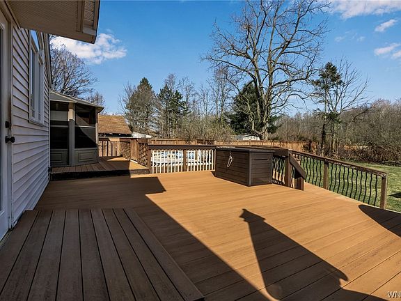 Welcome Home! This stunning 2000+ sq/ft 3 bdrm 2 full bath (1 on main floor, 1 in basement) ranch with 2 car garage and extra wide driveway has maintenance free vinyl siding w/ roof in great condition. Completely move in ready and extremely well maintained. Enjoy the huge family room w/gas fireplace including a bonus room/bright den including cathedral ceiling that could be an additional 4th bedroom or office if desired. Enjoy relaxing in the whirlpool jetted tub surrounded by stunning ceramic tile. Partially finished basement with ample storage and laundry. Bright kitchen with high ceilings overlooking the yard. Enjoy sitting on the deck overlooking private yard, above ground pool, and the world's biggest hot tub which is included!