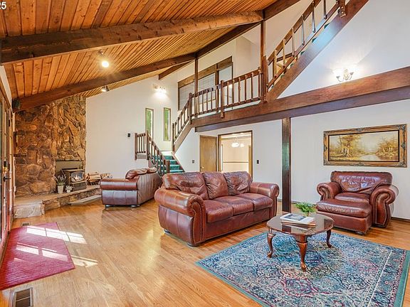 This charming custom home, nestled in the wonderful Timberline Rim neighborhood, is just a stone's throw from the Sandy River. As you step inside, you are immediately greeted by soaring beamed ceilings with skylights, pegged hardwood floors, a stacked stone fireplace with wood stove, and character everywhere!All 4 bedrooms have their own private deck, and 2 of those rooms have fireplaces for extra coziness in the winter months.The serene backyard welcomes you with trees, privacy, Trex decking, an inviting hot tub to unwind in, and the sound of nature all around you.Just a few houses down is the Timberline Rim Lodge (access is included through the HOA). Facilities include a party room with full kitchen, games room, pool, tennis court, basketball court, sauna, and miles of trails in and around the neighborhood and along the banks of the river. Across from the lodge is also the main access to the Sandy River.The home has been lovingly cared for, with the main components more recently updated (roof, heat pump, Trex decking, electrical, plumbing, hot tub, retractable screens, and wood storage). HVAC has been serviced regularly on a contract.All furnishings in the home are available for a mountain retreat or key short-term rental. Dated, but charming and ready for the new owner to customize.Come see this home for yourself! You won't be disappointed!