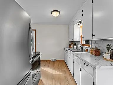 This beautifully updated and furnished three-bedroom, two-bathroom home is located in a highly walk-able neighborhood close to shopping, dining and parks - including Veterans Park, with convenient access to highways and the airport. The updated kitchen features new stainless steel appliances, counter tops, and luxury plank flooring. The main level offers a bright living room with hardwood floors, two bedrooms with wood flooring, and a remodeled three-quarter bathroom with a walk-in shower. The newly finished lower level includes a spacious family room, third bedroom with egress window, and a full bathroom. Additional updates include a new furnace and air conditioning in 2025, roof and water heater in 2020, and fresh interior paint. The backyard features a concrete patio, garden beds, and partial fencing. The over-sized detached garage has updated wiring and offers flexible space for two vehicles, workspace or extra storage. This move-in ready home combines comfort, style, and a fantastic location. Furnished with all new furniture in October 2025.
