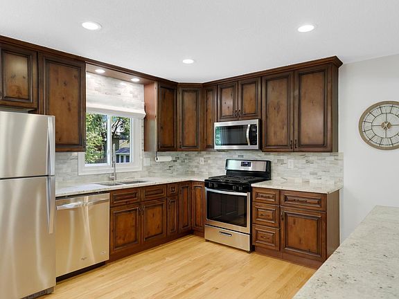 There's No Place Like Home! This stunning Maple Grove property offers an unbeatable home life experience. Designed with an open concept, the space flows seamlessly, anchored by a beautiful kitchen that features modern appliances, granite countertops, elegant cabinets, and a spacious island. Gleaming hardwood floors add a touch of distinction, and a fresh coat of paint throughout gives the home a contemporary feel. The layout is thoughtfully designed, with three spacious bedrooms located on the main level, making it convenient for family living. The lower level includes a versatile family room, perfect for entertainment, relaxation, or even as a guest space. Recent upgrades provide peace of mind, including new siding, a new roof, and a new water heater, ensuring that you won't need to worry about major repairs for years to come. The front door and the door leading to the garage have also been recently replaced, and the garage floor has been epoxied, adding both style and functionality. The backyard is truly a highlight of the property, I mean, just look at it! Offering a large, flat space, it is perfect for outdoor activities. An adorable patio area is ideal for cozy nights by the fire, creating a private oasis right at home. There is also a shed which provides extra storage space. Maple Grove is notable for its access to a variety of shopping and dining options, as well as proximity to outdoor fantastic outdoor recreation such as Fish Lake Regional Park and Eagle Lake Golf Course. Easy access to the highway ensures that commuting is straightforward and stress-free. This home offers a wonderful combination of style, comfort, and convenience, making it an excellent choice for anyone looking to settle in Maple Grove.