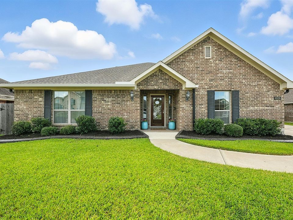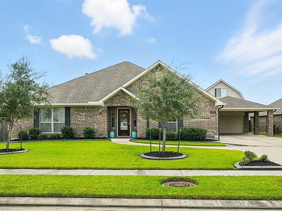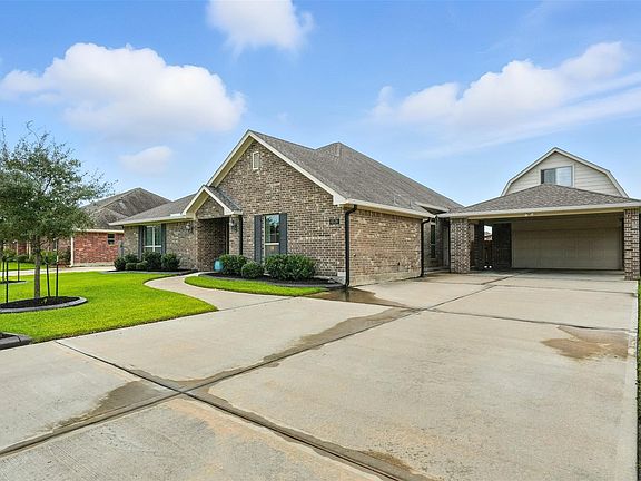 Welcome to 6526 Falcon Ridge in the sought-after Lakeland subdivision of Manvel, a premiere waterfront community. Built in 2021, this stunning single-story home offers 4 bedrooms, 3 baths, and 2,879 sq. ft. of thoughtfully designed living space on a 9,601 sq. ft. lot. The open-concept layout features neutral tones, quartzite countertops, white cabinetry, and a classic subway tile backsplash for a timeless look. With a 4-car garage, covered carport, and an upstairs bonus area above the garage ready to be finished out, this property offers both functionality and future potential. With all 3 zoned schools conveniently located less than 2 miles away, this home blends modern style, everyday comfort, and an ideal location. Schedule your private showing today!