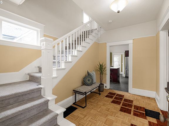 The first rule of Craftsman homes: you’ll fall in love before you even make it inside! With their signature columns and wide covered porch, they have you at hello. Delight in the vintage details once you enter with the statement parquet oak entry floor, ultra high ceilings, the brick fireplace with a stately mantle, picture rails and the connecting archway into the beautiful dining room with a bay window and gorgeous fir floors. The updated and practical kitchen is ready to work. There’s a breakfast island, an attached walk-in pantry and the exterior entrance makes outdoor dining effortless in the warmer months. The perfect house layout continues upstairs with three generously sized bedrooms all on the same level. The bathroom has been recently updated and is cute as a button with hexagon flooring and a skylight to take a bath under. Updated plumbing, electrical and an extensive foundation reinforcement to put your mind at ease. The basement has loads of potential with an exterior entry. It’s time to step back outside and ride the unicorn that is the back yard! A tiered deck with a ramp gives you options on where to relax. Fully fenced to keep your pets safe, a lush lawn for playing and planter boxes galore to keep your inner gardener happy. There’s even an outdoor shower! All of this in an ideal location, close to Mississippi, Alberta and Woodlawn, there will always be a new restaurant or shop for you to experience nearby. Welcome home! [Home Energy Score = 4. HES Report at https://rpt.greenbuildingregistry.com/hes/OR10235220]