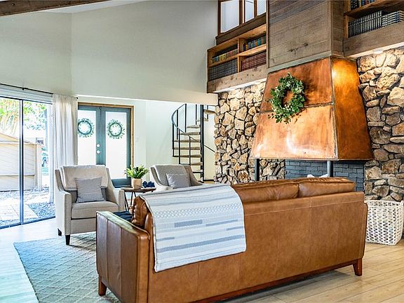 Welcome to this stunning 3-bedroom, 2.5-bath Mid-Century Modern home in South Lakeland’s prestigious Christina neighborhood, one of the area’s most sought-after communities known for its top-rated schools and peaceful setting. Every detail of this home has been thoughtfully updated within the last three years, blending timeless design with modern convenience. The inviting open floor plan showcases vaulted ceilings, a grand stone fireplace, and expansive rear windows overlooking the serene, tree-lined backyard. The gourmet kitchen is a showpiece—complete with granite countertops, cooktop and double oven, and custom cabinetry designed for both function and style. The spacious first-floor primary suite features a private enclosed patio with pavers, double vanities, and a walk-in shower. Upstairs, two additional bedrooms and a full bath offer plenty of room for family or guests. Other highlights include a dedicated home office, large laundry room with sink, and an impressive 42' x 12' air-conditioned Florida room—perfect for relaxing while enjoying peaceful views of the lush backyard. Recent improvements within the last three years include a new roof, dual AC units, tankless water heater, updated appliances, gutter system, fresh interior and exterior paint, private gate motor with remotes, and new flooring throughout. The property also features RV parking, a two-car garage, mature landscaping, and sits on a fully fenced half-acre lot at the end of a quiet cul-de-sac for added privacy. Located in beautiful Lakeland, Florida, this home offers the best of both worlds—peaceful suburban living with easy access to city conveniences. Lakeland is ideally positioned between Tampa and Orlando, offering charming local shops, restaurants, parks, golf courses, and over 30 picturesque lakes. With highly rated schools, a vibrant downtown, and convenient access to the Polk Parkway and I-4, this South Lakeland gem truly delivers a perfect balance of style, comfort, and location.