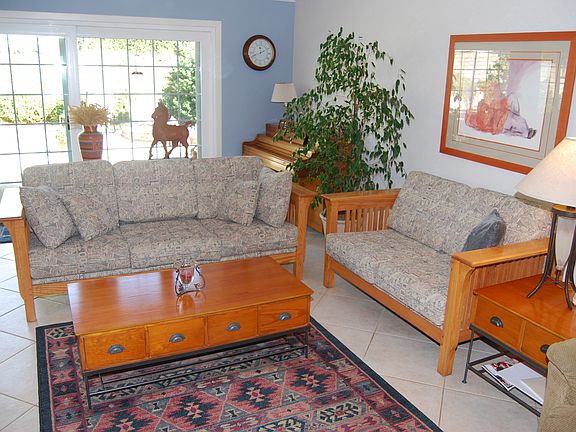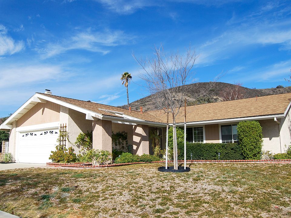 Welcome Home to your move in ready house! Look no further, stress no more! This home has it all! You are instantly invited in by all the natural sunlight from the grand sliding doors in the living room. Your eyes are drawn to the mountain view backdrop. The entire home has gorgeous grey wood-like flooring creating an open cohesive floor plan. They say the kitchen is the heart of the house and it couldn't be more true in this home. White, open, bright and completely custom built with a doubleoven, large island, granite counters, and cabinets galore! We know you're already sold after imagining yourself cooking for your family events, but just to sweeten the deal we invite you down the hall to two large bedrooms and a master suite. Pass through the stunning French doors and enter into your master oasis which includes a remodeled bathroom with double vanity, standing glass shower, and a walk in closet. Make sure to look up because every room has the extra bonus of a ceiling fan. The second bathroom has been completely remodeled and features fantastic storage space. Your tour continues into the large backyard which is perfect for hosting BBQs, birthday parties, or even a starting a large herb garden. This home is the full package!
