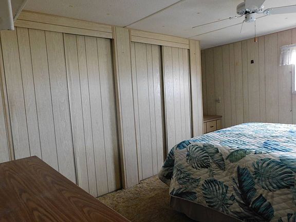 Cozy singlewide home has 1 bedroom and 1 bath. Roomy kitchen with eat in kitchen area opening floor plan to the living room. Sun room off of the living room great for morning coffee and evening dinners with windows to open for the Florida breeze. The bath has tub shower combo. Built in drawers with his & hers closets in bedroom for storage. Outside storage area, 5 x 18 for your convienence. Laundry facilities are on community property. This home has great potential and priced right for making it your own home. Come in today for a tour, don't wait!