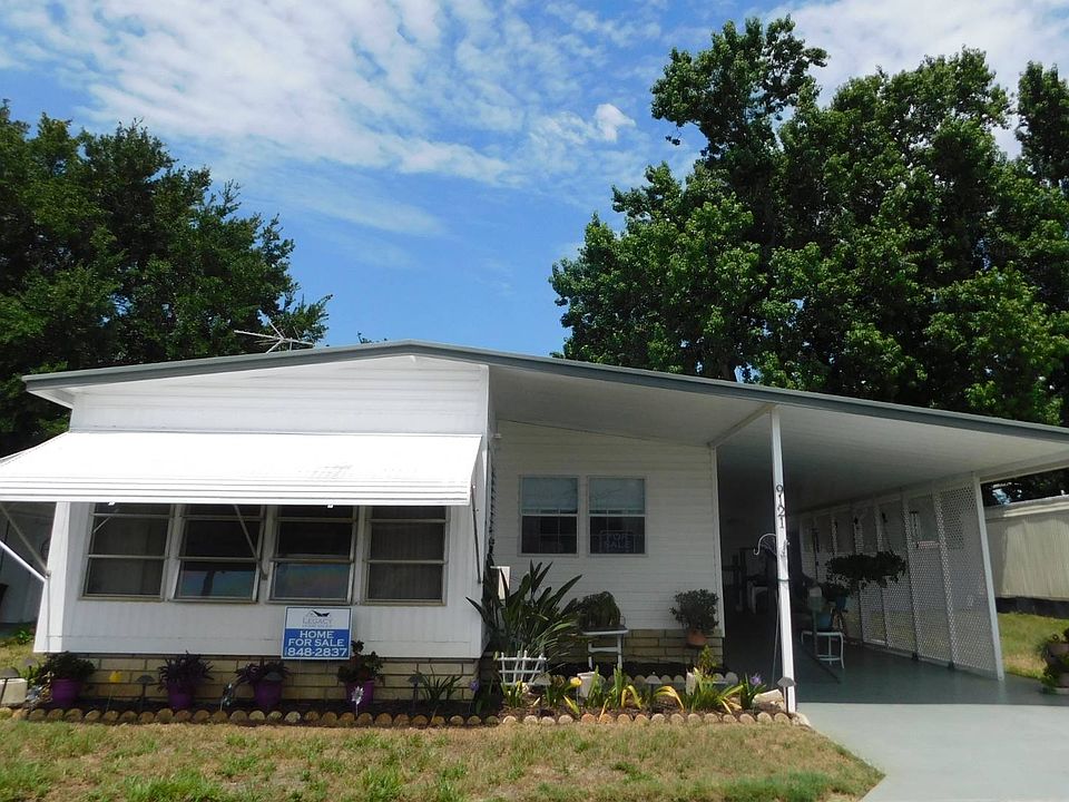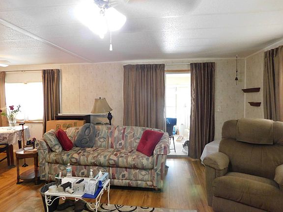 Ready to move right into this 2 bed 2 bath furnished double wide. Beautifully landscaped. Floors have been replace throughout with laminate all but 1 bedroom. Cozy living space with double sliding glass doors out to the east facing enclosed sun room. Get ready to relax in the heated pool at the clubhouse just 2 streets away.