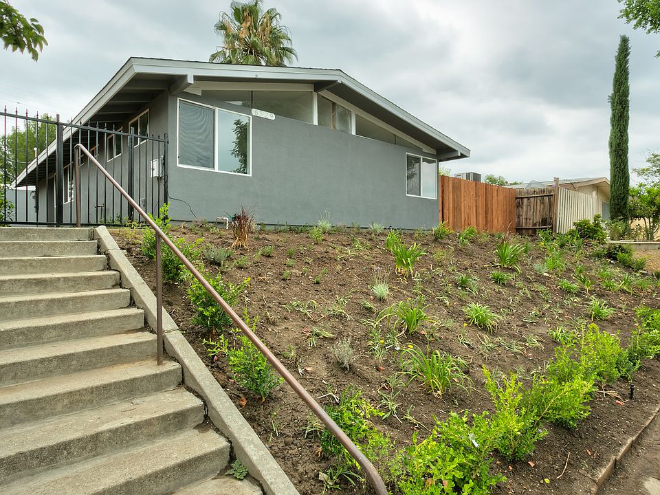 Be mesmerized as you walk into this modern, mid century inspired home designed by established architects William Krisel & Dan Palmer in 1953. The gorgeous, private walkway to the front door features lush greenery & tall shrubs. Upon entry you are greeted by an updated, open kitchen with all stainless steel appliances and gorgeous backsplash. From the kitchen there is a seamless flow into the dining room & generous sized living room area that features a sleek fireplace, high ceilings, recess lighting, & sliding glass doors into the backyard. If open floor plan is your desire then search no more! living area also features an open den conversion (fourth bedroom was opened up for more living area space). The guest bathroom features tasteful updates & a shower/tub combo. Down the hallway you will find 3 bedrooms, with the master featuring an en-suite bath. The backyard is an entertainers dream with plenty of room for an outdoor lounge area. Don't miss out on this impeccable, turn-key oasis!