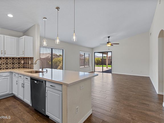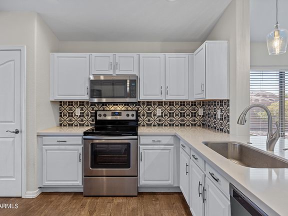 Experience the perfect blend of comfort and privacy with this exquisitely updated 3-bedroom, 2-bath rental home situated on an oversized corner lot in the highly desirable neighborhood of Eagle Ridge. Nestled in the breathtaking Sonoran Desert, this open-concept gem offers unparalleled mountain views and a serene living environment. Step inside to discover a spacious living area with soaring vaulted ceilings and a reimagined kitchen that's sure to impress. Featuring trendy finishes, a breakfast bar, quartz countertops, stainless steel appliances, and a designer-inspired backsplash, this kitchen is a culinary enthusiast's dream. The cozy bay window nook provides the perfect spot for dining with family. Recent upgrades include stylish Bedrosion 8 x 36 wood plank tile flooring throughout, new baseboards, updated window treatments, and recessed lighting. The inviting Dunn Edwards color palette and Hunter Douglas ceiling fans enhance the home's modern aesthetic, while shade screens throughout add to your comfort.