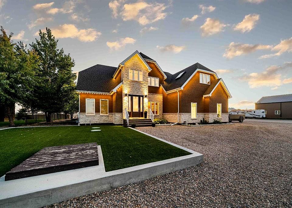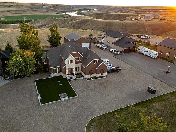 Perched atop a scenic coulee with sweeping views of the South Saskatchewan River, this custom-built 2,500+ sqft home sits on 1.58 acres and blends luxury with comfort just 15 minutes from Medicine Hat. The main floor showcases a dramatic two-story living room, gourmet kitchen with granite countertops and stainless steel appliance package, and a spacious primary suite complete with walk-in closet and spa-inspired ensuite. Upstairs, you’ll find three additional bedrooms and a vaulted flex space ideal for a home gym or games room, while the fully developed basement offers even more living space with two bedrooms, a bathroom, and an open entertainment area. Outside, over $200,000 in professional landscaping creates a private backyard oasis with an enclosed patio, fireplace, sitting areas, a built-in BBQ, and pizza oven—perfect for gatherings. Completing the property is a heated double attached garage and a 34x46 three-bay shop, making this residence as functional as it is beautiful. With unmatched views, luxury finishes, and thoughtfully designed indoor and outdoor spaces, this property truly defines prairie living at its finest.