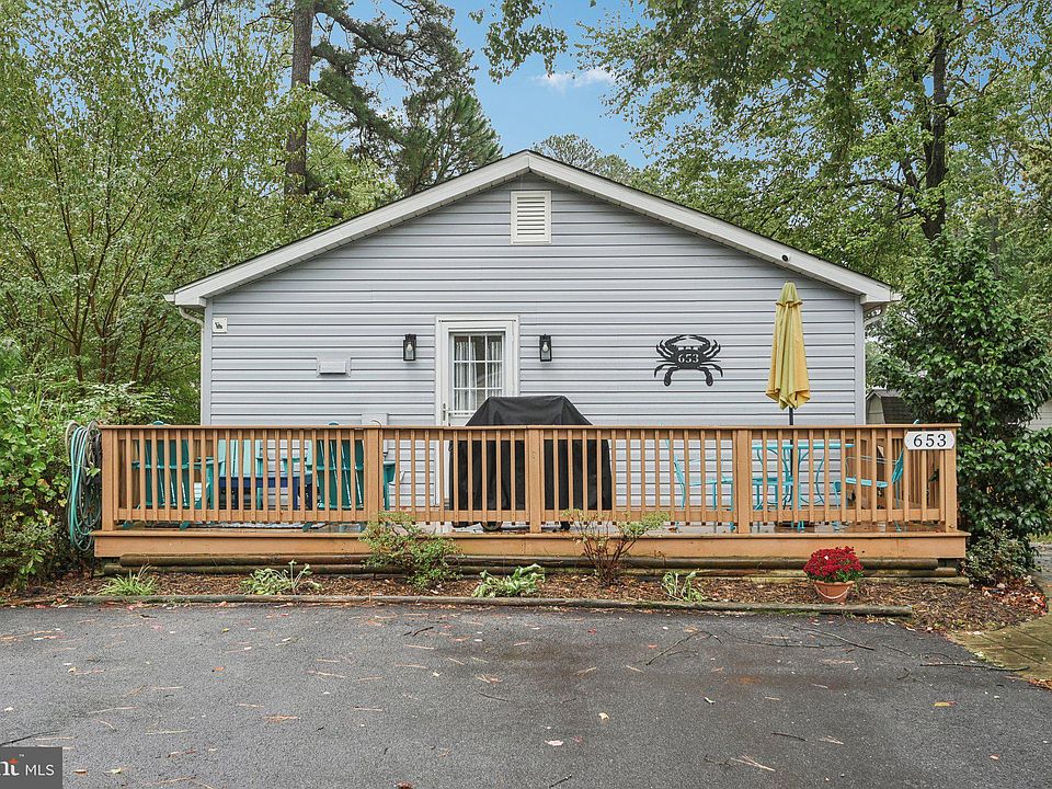Recently renovated, turnkey 3 BR/1 BA home with single floor living located 600 feet from the Chesapeake Bay, a waterfront community park, and two restaurants. Two generously sized bedrooms come equipped with spacious closets, window treatments, and ceiling fans. The third bedroom can be utilized as an office or a cozy spot for twin sized bed or bunk beds. The kitchen is also newly renovated with quartz countertops, a workstation, and space for bar stools. Stainless steel refrigerator, built-in microwave, oven/stove, and dishwasher (all new in 2022) included. A spacious dining room is situated right off the kitchen. The home also has a recently renovated modern bathroom with a walk-in shower. The living room can accommodate a full sectional and features a ceiling fan and coat closet. On-site laundry is available with a new stackable washer and dryer. The house has two decks, a new roof (replaced in 2023), and a partially fenced back yard. The newly paved driveway can accommodate 2 or 3 vehicles, and a maintenance-free shed is available in the backyard for storage. Home has central heat and air (HVAC system replaced in 2022) as well as optional baseboard heating. Easy commute to Annapolis or DC. The home is in a quiet friendly neighborhood- A Must See!