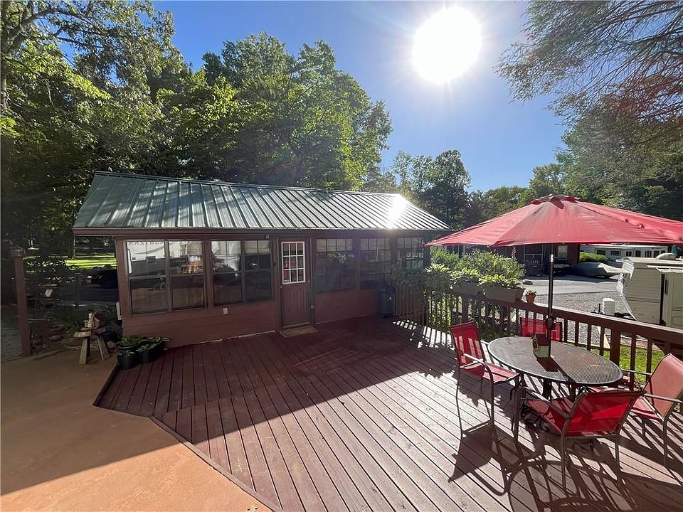 Here is Your little piece of Paradise! Nice lot tucked away with some privacy! Just across the street is a big park for your enjoyment! There is a spacious NEW deck + patio area for those fun family and friends to get together! The rustic country cabin has a NEW roof and is fully furnished with a newer couch, a futon that makes a double bed and twin bed, plus glass windows with custom window treatments and a full kitchen with extra cabinetry. The bath has a nice shower with a seat and a residential toilet. But hold on... also included is an absolutely luxurious Montana 38 foot 5th wheel #3813MS, so you can glamp and camp too! It is a perfect retreat with a king bed suite, 2 large closets, a washer and dryer, and a roomy bath with a seated shower. The open concept main room brings a nice ambiance with indirect lighting, a love seat style recliner, sleeper sofa, 50-inch TV, and an electric fireplace to cozy up to! You will love the kitchen with a solid surface center island, double sink, big 3 door refrigerator, pullout pantry, table and 4 chairs, plus an additional bar counter with glass door cabinetry. Perfect set up for a man cave and a glam camp too! Outside is a firepit area, plus shed storage and 2 Rubbermaid style containers. You'll love making a lifetime of memories here where you can just relax, go fishing, or join the on-going activities in Paradise with a Pool, Pavilion, Clubhouse and planned activities! Centrally located to all the fun mountain towns and events and just minutes to Cleveland, Helen, Dahlonega, Clarkesville and Blairsville. Shop! Dine! Fish! Enjoy vineyards and more! Paradise is a GATED vacation resort community with NO FULL TIME Living available. Listing Agents are both owners in Paradise, so call to see or for more detail information on Paradise and this property.