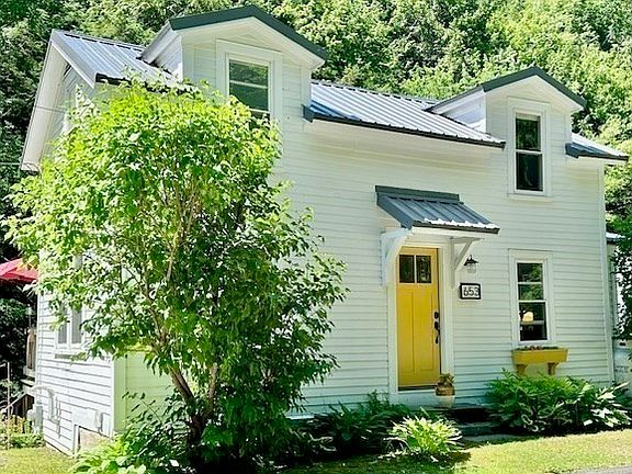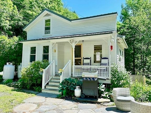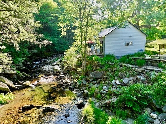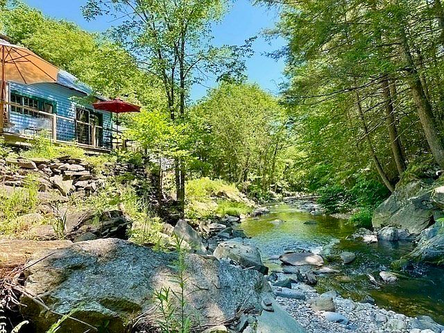 Own a slice of hilltown heaven with this delightful riverfront property in Chesterfield. Relax on multiple Goshen stone patios and watch the birds and wildlife. If you flyfish, the pristine waters of West Branch Brook are heaven with native and stocked trout. Adorable 2 bd Main house is recently painted, newer metal roof, and many other newer amenities and charming decor. Fully furnished and ready for you to move right in and enjoy the cooler summer weather in the hilltowns. Recently redrawn flood maps require flood insurance, currently $800/yr. The additional 800 sf summer cabana is a former wood turning shop from c. 1850. It overlooks the waterfall, perfect for an art/writer's studio, extra guests or airbnb. Cabana has full bath, outdoor shower, kitchen and 2 bed areas + deck. Close to Chesterfield Gorge and 30 minutes to Northampton. Offers due Wed, June 26, at 9 am.