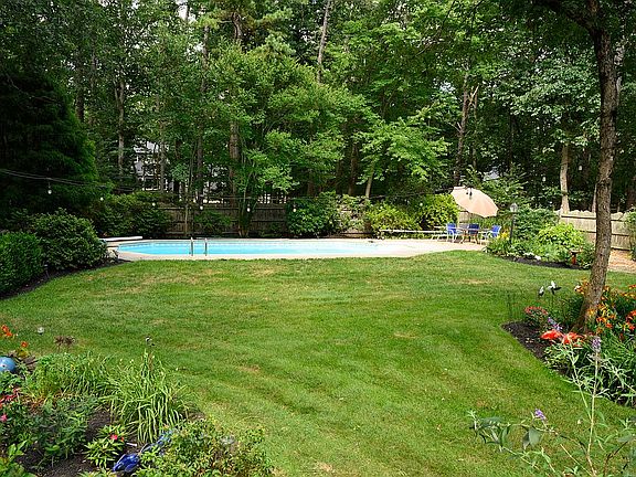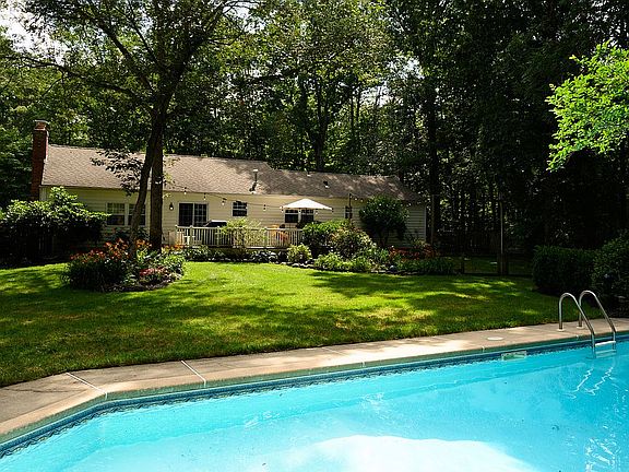 Step into the inviting foyer and see gleaming hardwood flooring runs throughout the entire upstairs. The spacious, updated family room - which has neutral, durable laminate flooring and a brick fireplace - flows off the updated kitchen. Adjacent to the kitchen is a formal dining room with a stylish glass light fixture, included in the sale. The home is perfect for entertaining! The kitchen is a knockout – with new custom to-the-ceiling cabinets, hard-wired under cabinet lighting, tile backsplash, recessed dimmable LED lighting and granite countertops. New stainless-steel appliances including 5-burner gas range and oven. Across the back of the home is a custom deck with composite decking and new vinyl railings offering panoramic views of the serene setting of trees and greenery in the back yard, an in-ground pool surrounded by a stamped concrete patio, mature landscaping, and storage shed large enough for all your patio furniture in the off-season. All baths have been updated. The partially-finished basement boasts tall ceilings with new paint and carpet. Tons of storage space! The heater, air conditioner, well pump, and water conditioner system are all well-maintained on service contracts.