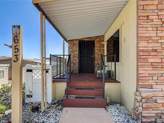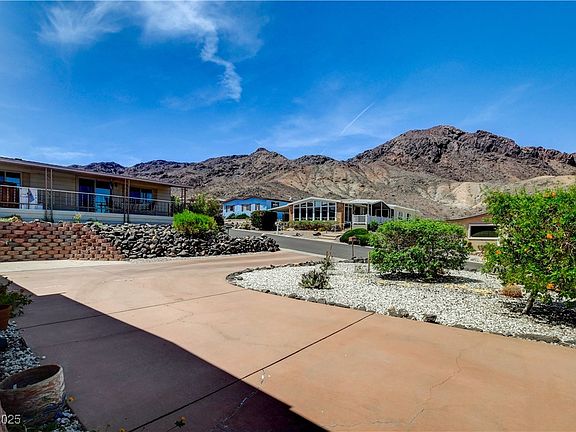 Welcome to effortless living in this charming, low-maintenance manufactured home located in the sought-after Phase 1 of Lake Mountain Estates, a vibrant 55+ community. This beautifully updated home features 2 spacious bedrooms, 2 bathrooms, and a massive garage—perfect for storage, hobbies, or your next adventure vehicle. Step inside and be greeted by a freshly painted open floor plan adorned with brand-new luxury vinyl plank flooring, creating a modern yet cozy feel throughout. Large picture windows not only invite in an abundance of natural light but also perfectly frame the stunning views of the iconic Black Mountain, bringing nature’s beauty right into your living space.