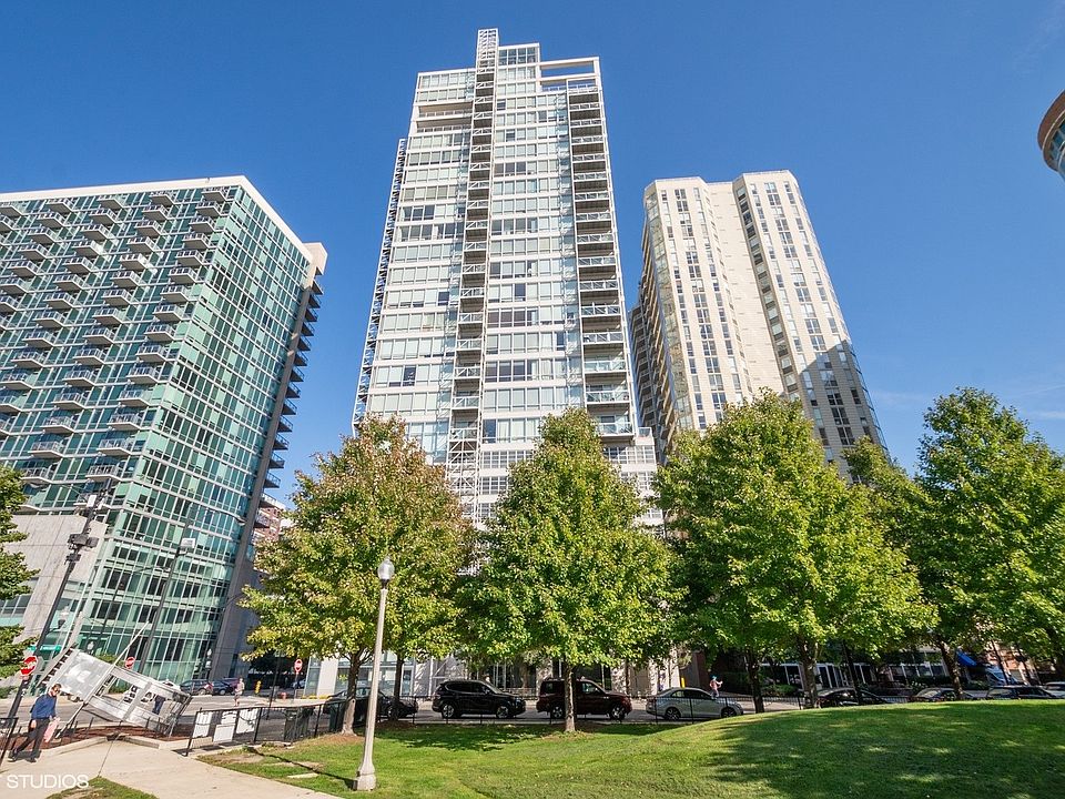 West River North across the street from Montgomery Ward park! High floor 1 Bed + Den with Balcony & Parking (INCLUDED) in River North! South-facing condo with floor-to-ceiling windows, private balcony with park/river views, and sleek kitchen featuring granite counters, modern flat front cabinets, and stainless steel appliances. Spacious den doubles as a home office with extra storage, Garage parking, storage cage, heat, gas, AC, cable & internet all included. Full-amenity building with 24/7 door staff, fitness center, and steps to Riverwalk, Ward Park, East Bank club, Merchandise Mart, Erie Cafe, Starbucks & Brown/Red and Blue Lines!
