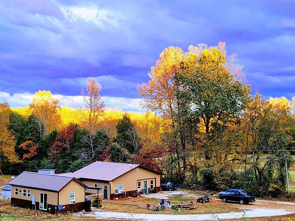 UNBELIEVABLE opportunity for investment/business near KY Lake. 2 homes on 1 property connected by deck, Live in one and rent the other (small home was rented for 500/month). Land has had plans devised by seller and BPU for power grid for a tiny home village OR RV park where property manager could live onsite. Property backs up to the Wildlife Refuge and has abundant wildlife. The main home is a custom built rustic home with 3BR/1BA and "tiny home" on property is 1BR/1BA all connected by nice decking, pool and firepit. Very large shop with a 14 x 14 garage door that could house an RV. Both houses have RV hookups to electric and septic. This is a unique and do not miss opportunity