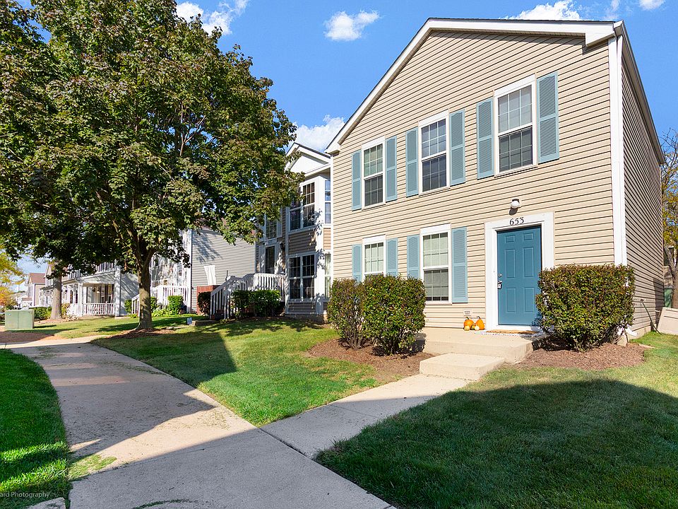 Welcome Home! You'll be impressed by this freshly updated 3-bedroom, 1.5-bath home located in Aurora's desirable Hometown community. Step inside to find new luxury vinyl plank flooring, an expansive living room with recessed lighting, and fresh modern paint throughout. The open-concept layout seamlessly connects the living room and kitchen-perfect for entertaining. The updated kitchen features custom 42" cabinetry, breakfast bar, granite countertops, and stainless steel appliances. A sliding patio door opens to a private paver patio lined with newly planted arborvitae trees for added privacy. The main level also offers convenient first-floor laundry hookups and a powder room. Upstairs, you'll find three generously sized bedrooms and a shared full bathroom. Additional highlights include an attached 2-car garage and an easy-access location within the subdivision. This investor-friendly property is part of a well-managed HOA that covers water, sewer, lawn care, snow removal, and exterior maintenance-including the roof, siding, and gutters. Don't wait-schedule your private tour today!