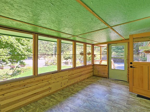 In 2024, VA appraised this beautifully updated home with a view of the golf course for $725k. Inside are custom CVG fir cabinets and trim work throughout with bamboo & cork flooring. Updated bathrooms, including a walk-in jetted tub and walk-in shower. The living area includes a built-in hutch and a bookcase. Enjoy the fully screened porch. Newer metal roof, new windows, screens and gutters. A heat pump and a propane fireplace complemented by a full house generator. The property is fully fenced with an electronic gate. A 24'x36' garage offers storage and parking. Also, two unfinished cabins as possible studio spaces. Additional features: A greenhouse, raised bed garden, fruit trees, outside storage and RV parking. Rock Island Fiber.