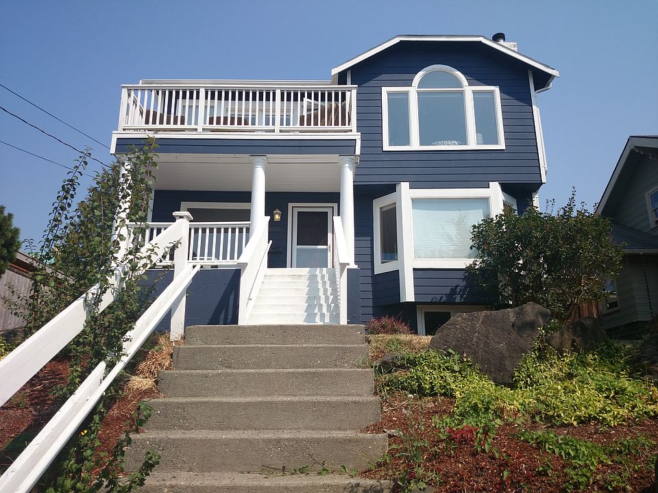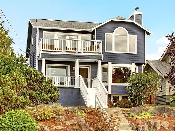 Don't miss another Seattle sunset! Entertain friends in this huge chef's kitchen with beautiful granite countertops, Viking stove, stainless appliances & breakfast bar. Open concept with formal dining room, cozy living room with fireplace & den/office. Luxurious Mstr suite opens to private deck overlooking Puget Sound & Olympic Mountains. Tons of storage. Lower level is finished MIL suite w/2nd kitchen. 3 car detached garage w/alley access. Flagstone patio for intimate summer BBQ's. Blocks from Lincoln Park.