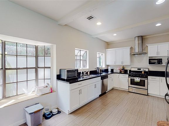 This beautifully remodeled Lake Balboa house features two separate apartments or can be rented as a whole unit with the interior stairs open. The lower unit you are viewing now has 4 bedrooms and 3 bathrooms. From stainless steel appliances to quartz counters to brand new wood floor, no expense was spared in the remodel of this house. New, energy efficient HVAC central air has been installed. The bathrooms have custom showers that have tile throughout and rain shower heads coming from the ceiling. This unit also features a back-to-back custom rock fabricated fireplace in the center of the room. There is also a shared pool in the backyard. There is also a washer/dryer in the garage for personal use. Finally, the front yard has beautiful, high quality, artificial turf so there's no need to excessively water. The whole house is also on the market in case someone wants to rent all 7 BD / 5 BA (with 2 kitchens) out in its entirety. The upstairs unit is also for rent in another posting. Previously the tenants have used the upstairs area for living and downstairs as office space for their home office and employees. Please make sure you view the virtual tour for more info.