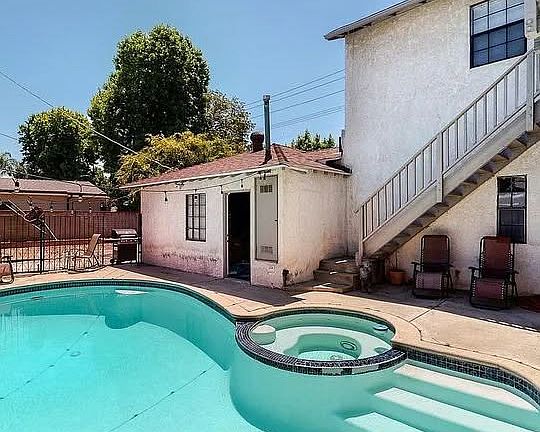 MAY 14TH Rental- OR SOONER** Pro-rated rent for move-in ($550 + $928 security deposit) ** No pets ** No couples The Home : 3,400 sqft * Gorgeous large home in Van Nuys in a sweet & safe residential neighborhood - within a mile of grocery stores / shopping centers. * 2 floors featuring balconies & plenty of windows for natural light * Laundry ON-SITE * We have 2 Bengal cats on the 2nd floor, so the upstairs doors stay closed (you won't have to worry about pets on your floor!) * Each floor has it's own large kitchen with dishwasher, and garbage disposal * Pool & hot tub * Garage for storage + shed * Plenty of backyard space for gatherings, activities, filming, workout, anything ! * Easy access to public transit (Orange line is just a 12m walk down, and bus stops are just up on the main road a couple minutes walking). * Ample parking availability (Both on the property and in the neighborhood) Read on below for all details - Please reach out for inquiries, viewing appointments (zoom/skype tours welcome !) _______________________________ We currently have ONE room available on the 1ST FLOOR. - *MAY 14th rental (12 month lease)- Or welcome to move in sooner : Monthly Rent : $1100.30 (Deposit = $928) - 1st floor - Private bathroom (shower) - Natural light with a lovely pool view - You have 3 roommates on this floor _______________________________ Looking For Tenants , ok with the following * Artists / Creatives welcome * Cosistent income * Cleanliness IS A PRIORITY. * Positive personalities - able to communicate effectively with others. _______________________________ The Roommates are * Currently - 5 males, 1 female * Creative movie/music lovers that both work in film - enjoy watching films, talking about them, arranging movie nights or small parties/gatherings. * Between our 20's-30's * Mature enough to talk through house agreements on cleaning, planning events together, issues incurred with each other - we prefer to communicate * Busy enough with each's own goals to also give each other space as needed. * Kind - and just want other kind & reliable people to get along with 1 year preferable. Application fee will apply to move forward with rental process (after meeting or seeing the space, to confirm if its a fit of course)