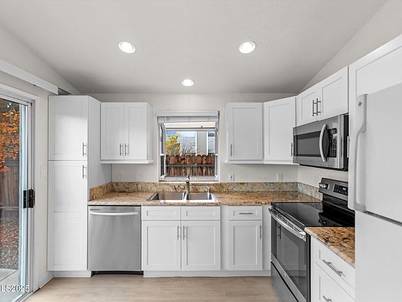 This sunny and inviting 3-bedroom, 2-bath home in Northwest Reno features bright, open living spaces and wide mountain views. Natural light pours through large windows, highlighting the home's airy layout and comfortable flow. The well-designed kitchen opens to the living and dining areas, making it ideal for both relaxing and entertaining. The spacious primary suite offers a quiet retreat, and the 2-car garage provides plenty of parking and storage. Here you will find convenience from a well-established neighborhood, just 30 minutes to downtown Truckee, minutes to major shopping centers, close to great parks and schools. With its beautiful views and excellent location, this property blends comfort, practicality, and scenery in one appealing package.