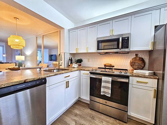 Nestled between the Intracoastal Waterway and the Atlantic Ocean in the exclusive town of Ocean Ridge, this beautifully updated 2-bedroom, 2-bathroom condo offers a rare blend of modern comfort and serene coastal living. Whether you're sipping your morning coffee as the sun rises over the water or unwinding with breathtaking sunsets, this home offers a front-row seat to Florida's natural beauty. Step inside and be welcomed by sun-filled interiors and a spacious open-concept layout. The renovated kitchen is a standout, featuring new stainless-steel appliances (2024), granite countertops, modern tile backsplash, and crisp white cabinetry with polished gold hardware. Enjoy remarkable water views as you prepare delicious meals for your friends and family. The open concept flow of the kitchen connects seamlessly to the dining area and living room, making it perfect for entertaining. Beautiful honey luxury vinyl plank flooring flows throughout the main living area and evokes a modern yet beachy aesthetic. Hurricane-impact windows and doors wrap the home in security and peace of mind, while luxurious window treatments and custom Zebra blinds add privacy and style as natural light floods the entire home. The spacious master suite includes a generous walk-in closet and an updated ensuite bathroom with a modern vanity and shower/tub combo. The second bedroom with a spacious walk in closet, located at the front of the unit, is ideal for guests or a home office. A second full bathroom features a walk-in tiled shower and contemporary finishes. New, modern ceiling fans keep the bedrooms cool. Being offered fully furnished or unfurnished ensuring the home is move-in ready for new owners. The unit is easily accessible via both elevator and stairway for added convenience. Wellington Arms residents enjoy a well-maintained community with resort-style amenities: a waterfront pool, BBQ area, seawall fishing, a recreation room, library, kayak/bike storage, private lockers, and convenient on-site laundry. Just across the street, explore the sand dunes of Ocean Front Beach Park or wander the nature trails of Ocean Ridge Hammock Park. Boaters and fishing enthusiasts will love the proximity to the Boynton Beach Inlet, just 10 minutes away, providing direct access to the ocean. Located minutes from upscale shopping and dining in Manalapan, vibrant downtown Delray Beach, and Palm Beach, with easy access to I-95, Palm Beach International Airport, and the Brightline train station. Milestone Structural Safety Inspection has been completed with no required repairs, and all assessments have been paid in full. Live your coastal dream in Ocean Ridge, where every day feels like a vacation.