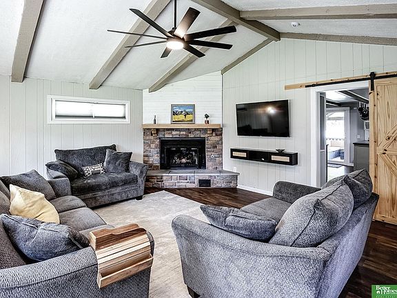 Contract Pending Pre-inspected! Situated on a generous 1/4 acre lot, this charming ranch home boasts over 1,270 sq ft on the main level. Inside you'll enjoy a spacious living room featuring  vaulted ceilings with exposed wood beams, plenty of natural light from numerous windows, luxury vinyl plank flooring, and a rustic stone fireplace.  Sliding barn doors lead into a large eat-in kitchen equipped with newer appliances, LVP flooring, and direct access to a covered deck that overlooks a fully fenced, flat backyard.  Down the hall, you'll find an updated a bathroom along with three spacious bedrooms.  The finished basement includes a workshop, large recreation room, a flex room and a 3/4 bathroom.  Conveniently located just minutes from the Benson entertainment district and Dundee.  Both offering plenty of restaurants and shopping.